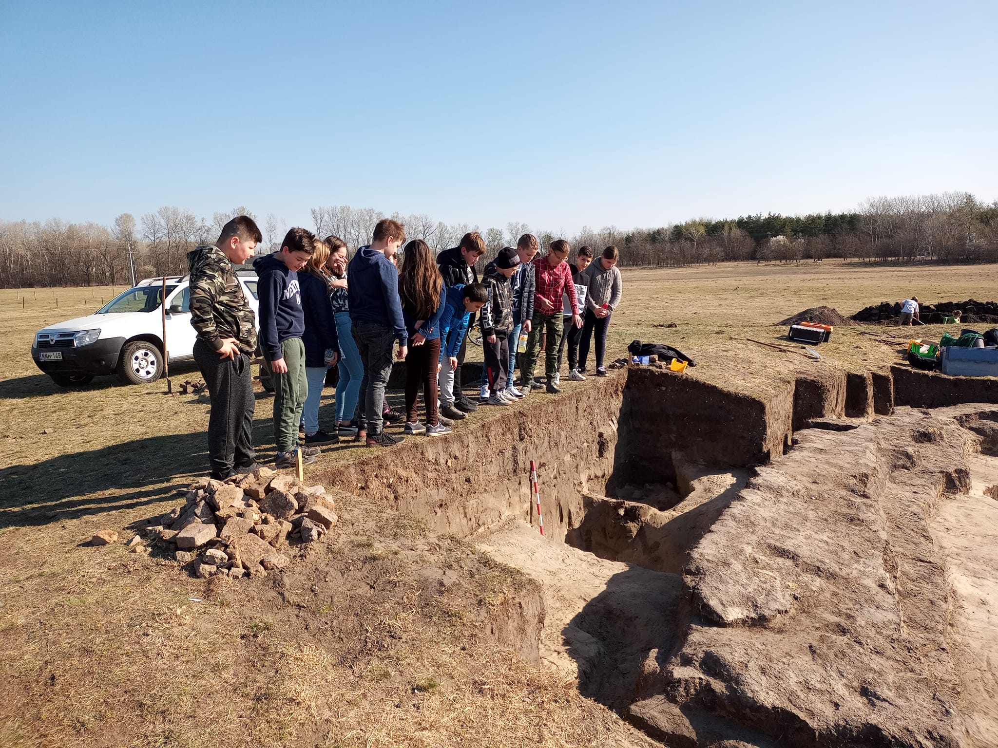 A tanulók osztály szinten kerékpárokkal tettek látogatást, amit a régészek kiselőadása színesített.
